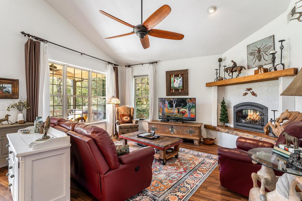 A rare offering, this gated equestrian estate seamlessly blends natural beauty, versatility, and income potential in a truly inspiring setting. Situated on a peaceful tract with long-range mtn views, the property features a 3BR/2.5BA residence with a dedicated home office, an oversized detached garage/workshop with a fully equipped artists studio, and a well-appointed barn with tack room. Multiple fenced and gated pastures offer ideal space for horses or the potential to create a unique glamping retreat. Nestled by a tranquil creek, a custom-built treehouse with loft and private outdoor bathroom offers a memorable guest experience or ready-to-go short-term rental. $664,900. MLS: 419569