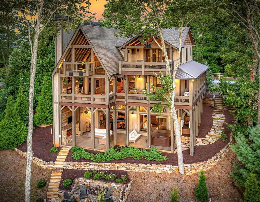 This MODERN LUXURY home was showcased in the Blue Ridge Parade of Homes and blends rustic elegance with breathtaking, multi-layered MOUNTAIN VIEWS. Built by Kevin Teague w/ 4BR, 4.5BA, 5 fireplaces and a 42-foot illuminated, see-through glass catwalk. $2,190,000. MLS: 417705