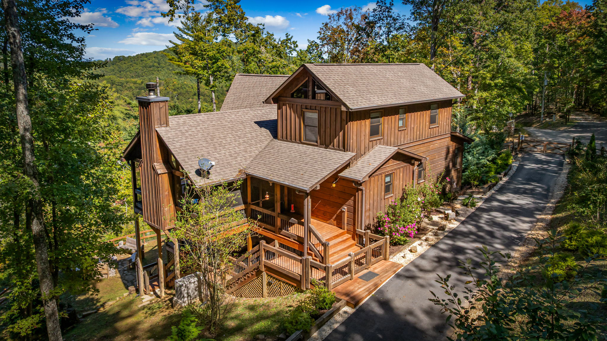 Nestled within the prestigious Aska Adventure Area, this exquisite lodge ensures peace of mind no matter the weather, thanks to its Generac generatorno need to worry about losing power during ice storms. Offering an unparalleled mountain living experience, this 4-bedroom, 3.5-bathroom sanctuary combines timeless elegance with bespoke craftsmanship. Meticulously designed landscaping, a secure fenced yard, and a gated entrance guarantee privacy and exclusivity. As you step inside, youre greeted by a screened party porch, perfect for cozy gatherings around the fireplace while soaking in breathtaking vistas. The open-concept interior seamlessly blends a gourmet kitchen with an inviting living room, featuring a main-level master suite and an additional half bath. Upstairs, youll find two bedrooms and a bathroom, while the terrace level is a haven of relaxation with a living area, bedroom, bathroom, wet bar, and a patio complete with a hot tub. Modern rustic touches, expansive windows framing stunning scenery, stone fireplaces, and a host of upgrades enhance the home throughout.